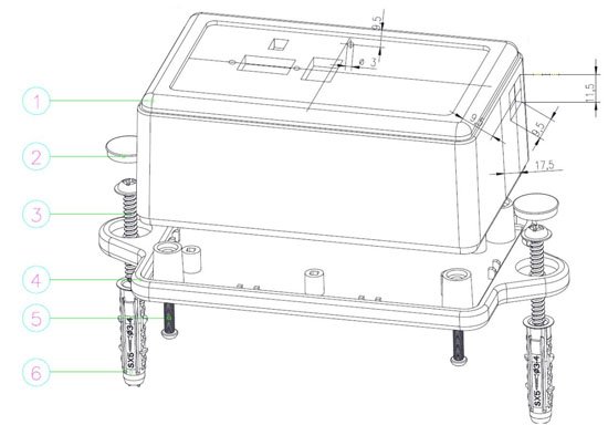 本品为壁挂型,传感器两侧中间有两个安装孔,用标配的