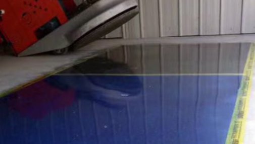 d待材料与地面充分反应完全后,采用500目树脂磨片水磨地面,研磨后洗吸干净地面污水,地面自然晾干,进入下一步工艺。