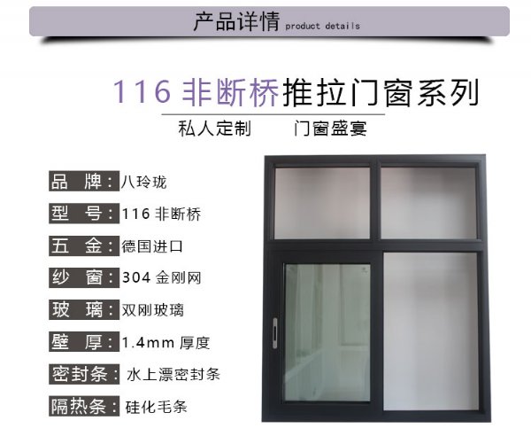 广东八玲珑108断桥铝合金隔音平开落地门窗