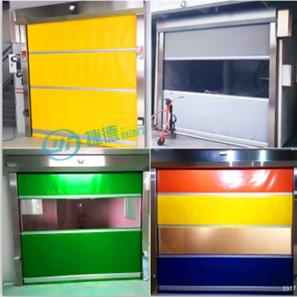 快速卷帘门有多种颜色可供选择,如:黄色、白色、兰色、红色、橘黄色或全透明等。透明视窗可选矩形或椭圆形,增加了安全性及管理方便性能。