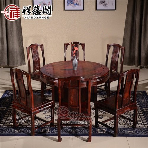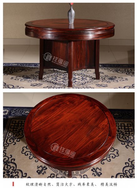 餐台圆形印尼黑酸枝木餐厅实木小户型饭桌设计古朴、典雅,庄重而又大方,是一种工艺造型,给人一种由心的抚慰。