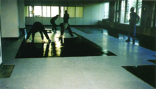 导电胶粘剂刷涂在PVC防静电片材上,遵守晾置时间,进行加压胶接,然后处理接缝处,用胶焊机把防静电