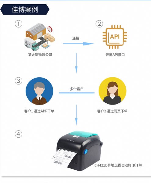 佳博CH421D智能云打印机基于云通信技术,强大的数据传送功能不但在快递物流行业得到广泛应用(一个公司多个办公室,共享云打印机,统一寄件更方便!多家网店或多家子公司,共享云打印机,仓库统一配送,省钱、省力、省心!),它还适用于资产管理、医疗行业、会务票务、旅游景点等需要进行自动打印或远程打印的场所。佳博CH421D智能云打印机智慧物流电子面单打印好帮手