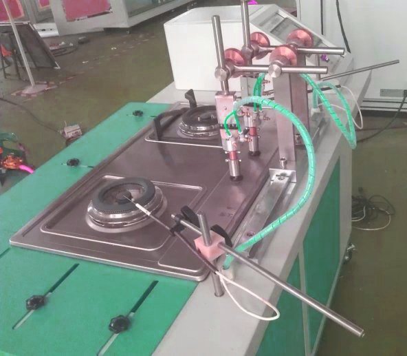 测试台有可调空气进口,以便检测嵌入式灶具时调节助燃空气;