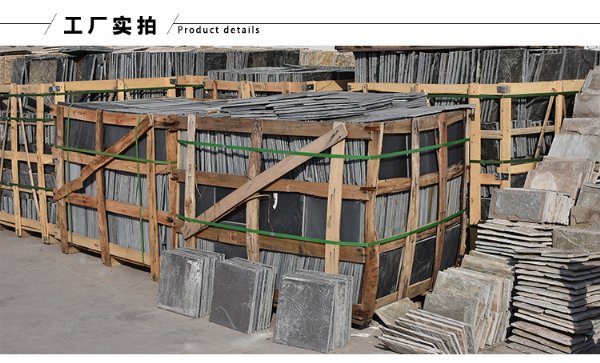 青石板铺地石厂家 黑色板岩碎拼石 黑灰色片石价格