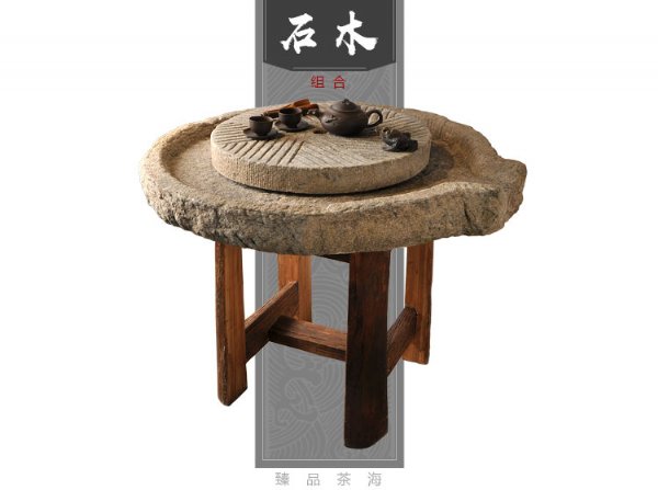 石磨茶盘 老磨片茶台 中国风旧石磨 家用茶室老石器