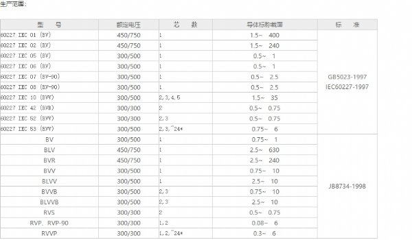 本产品适用于额定电压450/750V及以下的动力装置、固定布线及挠性连接电器之用。