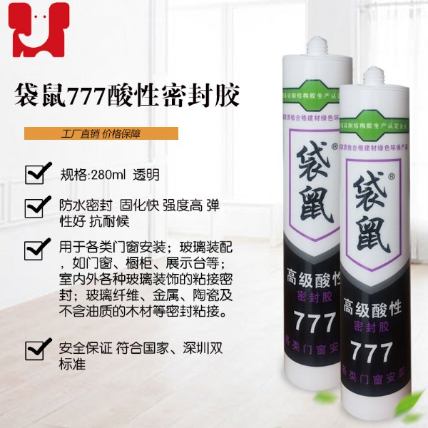产品特征:单组分、醋酸型、室温固化、中等模量硅酮密封胶,强度高、弹性好,硬度适中;固化速度快、使用方便;优异的耐气候老化性能,长久的使用寿命;对大多数基材有良好的粘接性能。