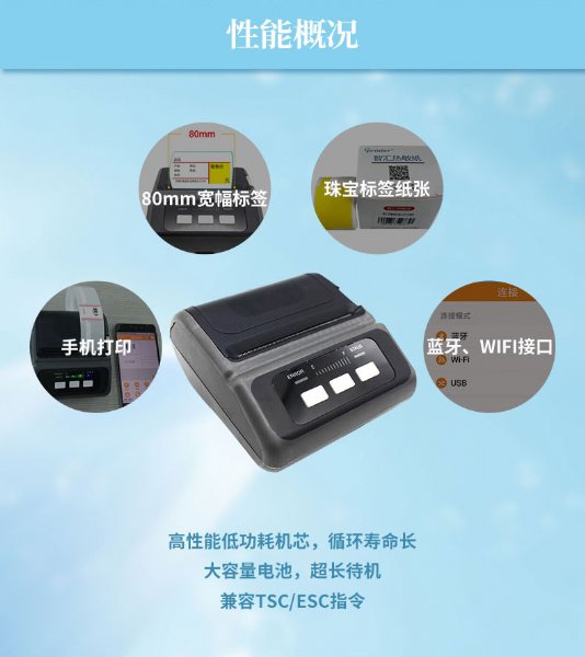 电池,实现超长待机,打印机兼容TSC/ESC指令。