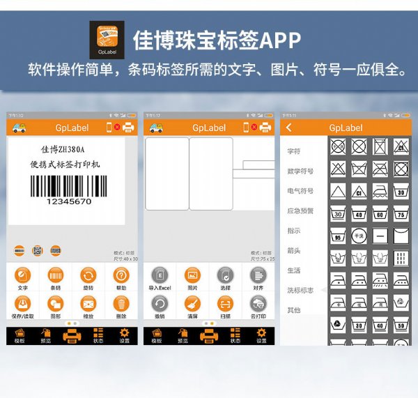 电力设备、服装、商场超市等行业模版,一键应用模版,即时打印标签。佳博珠宝标签*耗材,材质细腻精美,三者配备一起使用,完美解决珠宝首饰行业的标签打印需求。