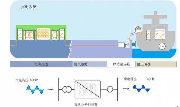 国家交通运输部发布的JTS155-2012《码头船舶岸电设施建设技术规范》行业标准中指出:“船舶岸电(shore-to-ship power supply system)(简称:SPS)”系指,“由岸上供电设施向船舶提供电力,其整体设备称为码头船舶岸电设施”。岸侧岸电设备与船侧电气设备的电气参数在联船时必须一致,包括电压、频率及相位角等方可允许送电。