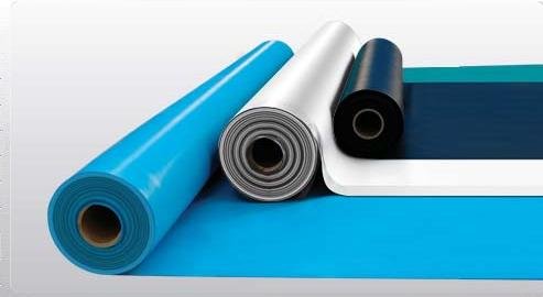防水卷材,是以聚氯乙烯树脂为原料,掺加增塑剂、填充剂、抗氧剂、紫外线吸收剂及其它助剂等一次挤出而成的新型