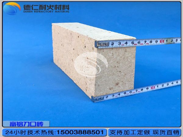 隧道窑中高温烧制而成的耐火制品。根据AL2O3含量不同,分为特级高铝刀口砖、一级高铝刀口砖、二级高铝刀口砖和三级高铝刀口砖。高铝刀口砖的性能随着铝含量提高而提高,高温主晶相以