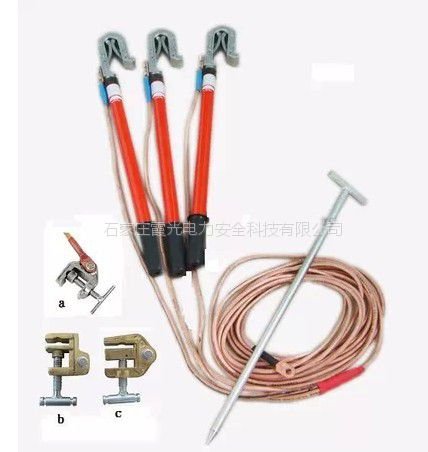 (4)接地软铜线有分相式和组合式,接地棒有平口式和双簧钩式线夹。
