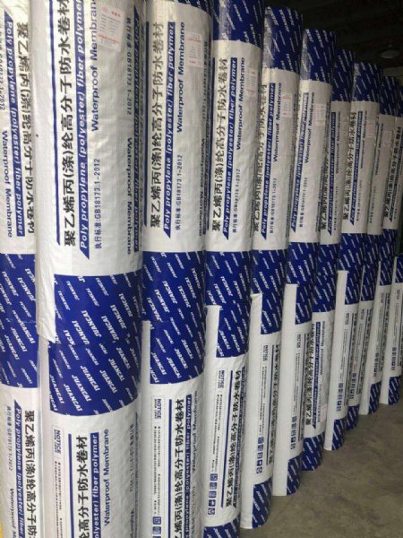 丙纶高分子防水卷材与水泥有很好的粘接性,这是复合卷材的主要特点,工程设计可采用夹层式、保护式、