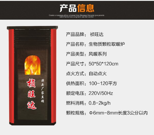 暖气片相连接,组成家庭式独立采暖系统,通过燃烧生物质颗粒燃料加热介质(一般为水),加热的水通过管道流通至每个房间的散热终端暖气片,*终通过暖气片将热量散热出去。水变冷后回到