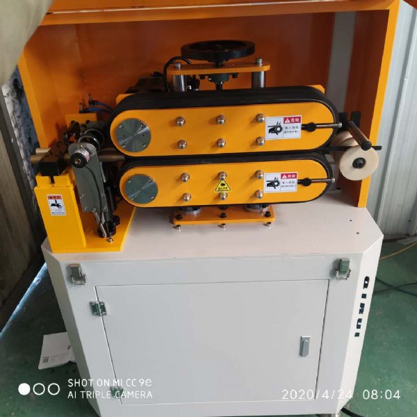 管材料放入放料架的转盘内。手动牵头从导轮经过进入摆杆了两个轮内,然后插入牵引带内。手摇手轮压紧管材,不要压的太紧会把管子压扁。