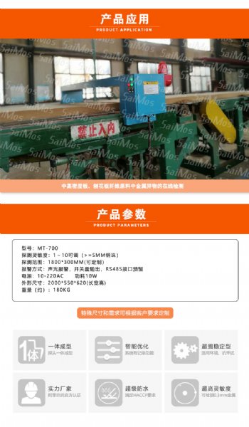 中高密度板、刨花板纤维原料中金属异物的在线检测。