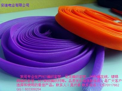 编织网管由直径为0.10MM、0.15MM、0.20MM、0.25MM、0.27MM、0.38MM的PET或尼龙纱线编织而成的。网管可以很轻松的扩充至原来的1.5倍并且很轻易地束紧各种不规则形状的物体。它可以在较大温度范围内保持柔软,可以抑制化学腐蚀、防紫外线和摩擦,其特有的网状特征还具有良好的通风即时扩散线材热量功能,产品表面光滑、色泽鲜艳、花样繁多、因而编织网管室电子、汽车、飞机、船舶、工业家庭线路管理和捆绑应用的理想产品。例如DVI线材网套,HDMI线材网套,机动引擎线路装扮,家庭影院线管理,电脑机箱内线材布置,办公室线路管理,汽车线束,水肺