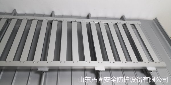 根据屋面工程相关规范,坡屋面要保证一定的坡度以确保屋面排水性功能。在具有坡度的屋面持物作业行走,传递物品,或者作业工具、设备没有绑扎等都会造成物件在屋面滑落从而造成高空落物危险。因此,当有些建筑无外天沟时,可在施工过程中于檐口区域设置临时檐口防坠落装置,提供更有效的安全保障。
