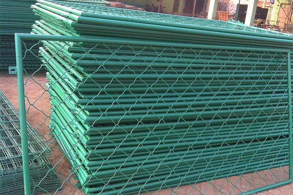 框架护栏网规格 型号:网 孔(mm):75x150 50*50 ;网 片(mm):1800x3000 ;边 框(mm):20x30x1.5 ;网丝丝径(mm):2.5-6.0; 网丝塑后(mm)3.3-7.5:立柱尺寸(mm):48x2x2200;整体弯折:30° ;弯折长度(mm):300 ;立柱间距(mm):3000 立柱预埋(mm):2100-3000。