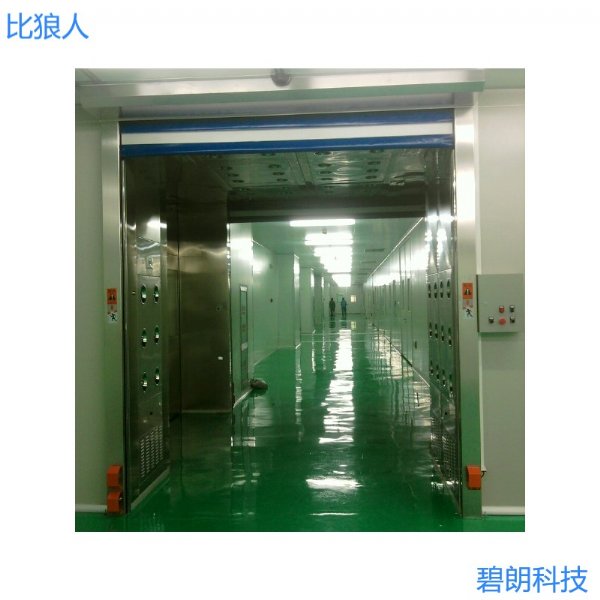 风机,风淋时间为0-999S可调。风淋室吹淋期间双门互锁,吹淋完毕后,后门自动打开。