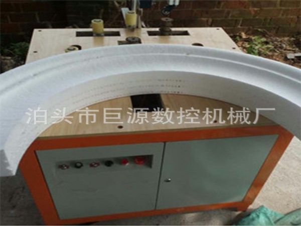 齿轮,让其左右旋转,在旋转的同时要经过加热丝做成的模型加热旋转切割成型。罗马柱底座切割机可以做任意半径的罗马柱坐、柱头、弧形窗套及各种圆形图形的切割,切割尺寸大,运行平稳,切割出来的产品不会产生波纹。要比手工切割提高十几倍的效率,是替代手工切割的更好选择。操作上面的圆弧机