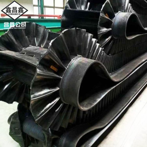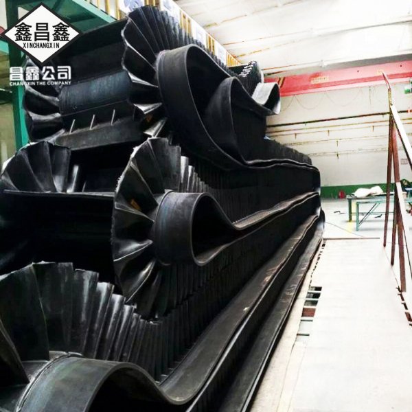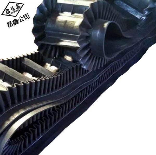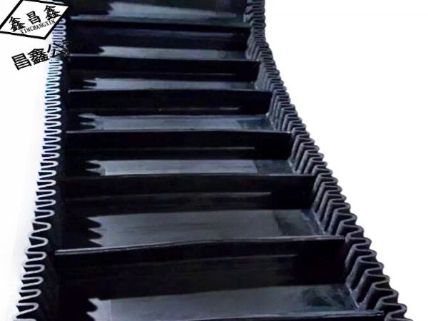 滚筒,档边设计成波纹状;横隔板的作用是承托物料,为了实现大倾角输送,采用T型TC型。档边和横隔板是用二次硫化的方法与基带连接的,具有很高的连接强度。