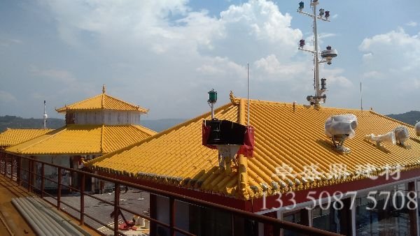 琉璃瓦产品,采用聚酯复合材料,高温高压模具成型工艺,其重量轻、强度高、寿命长、耐候性好,与两江游船相得益彰,具有中国传统的古典韵味。