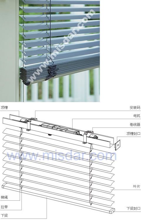 2、百叶升降平稳,翻转角度调整灵活,叶片宽度有35mm、50mm,材质:铝合金、竹、木等。
