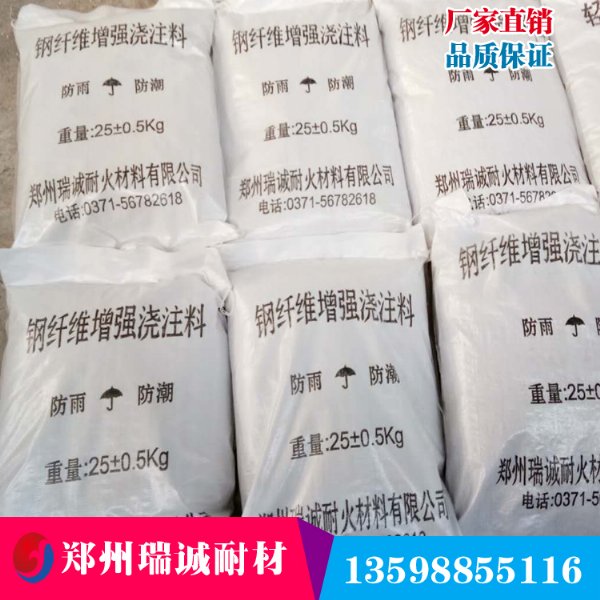 在对于其重要部分的用高铝熟料作为骨料和粉料的基础上兑入适当的钢纤维浇增强浇注料的特点特性就是强度高、韧性好而且热震稳定性好、抗剥落及耐*磨性能强等特点,用于温度阶梯变化比较容易导致炉墙破损的部位。