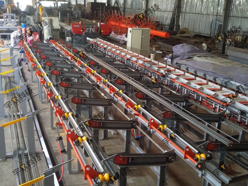 6.套丝辊道采用V型轮输送,无需人工辅助,保证钢筋自动输送至套丝机,套丝完成后可自动翻至下一个工序;V型采用耐磨材料,使用寿命高。