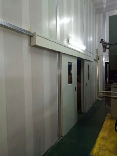 钢板冲击而引起室内声响,也明显减弱。通过测试,按照ISO 717/82和UNI 8270/7标准,选用密度为100kg/m3岩棉作芯材的夹芯板,隔声效果可达到RW=29~35 dB。