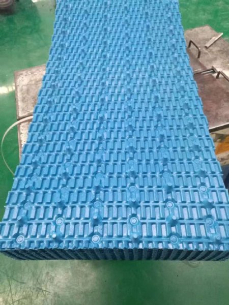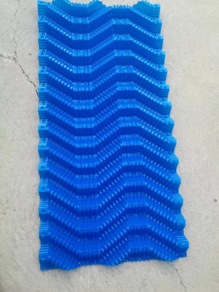 充沛利用梯形斜波的合理规划准则, 一起添加水膜截流的次数,使水膜屡次重分配且更趋于均匀。添加竖向凸纹停留波,进步水膜横向分散才能,能使在填猜中水气热质交流更充沛,一起使水膜下泄速度减缓,延伸热质交流时刻,进步冷却作用。填料片距
