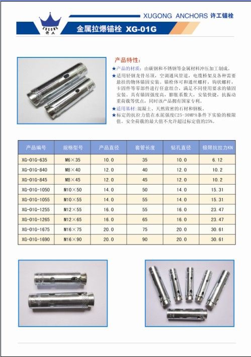 ,钩状螺杆,卡固件等零部件进行任意组合,满足不同使用需求的锚固安装。具有锚固强度高,膨胀系数大,安装快捷,抗震动重载荷等优点。