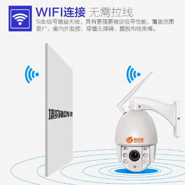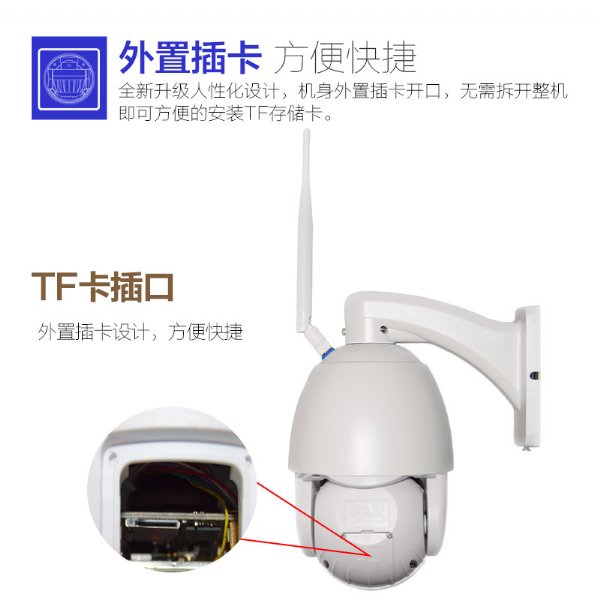 ,兼具麦克风、扬声器等功能,可以随时将高清视频和即时语音推送给你。当你不在家的时候,万一家里有人闯进,能够自动检测到并发出警告声,甚至你还可以通过手机远程球机的扬声器喝退入侵者。此款球机还有强大夜视能力,6颗LED
