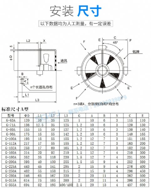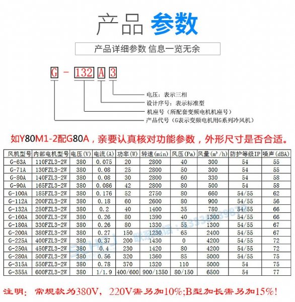 部分参数如下:G-71A,功率25W,风量300,转速2800,电压220V/380V