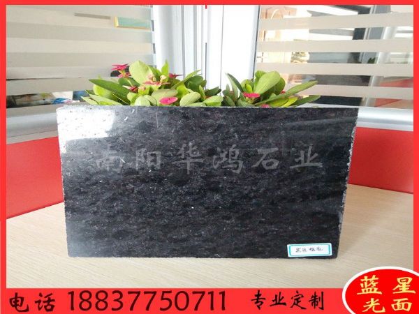 水晶黑 蓝星 黑色粗花染板 处理工艺:染色(磨光) 花型:粗花 产品特点:梨花白/