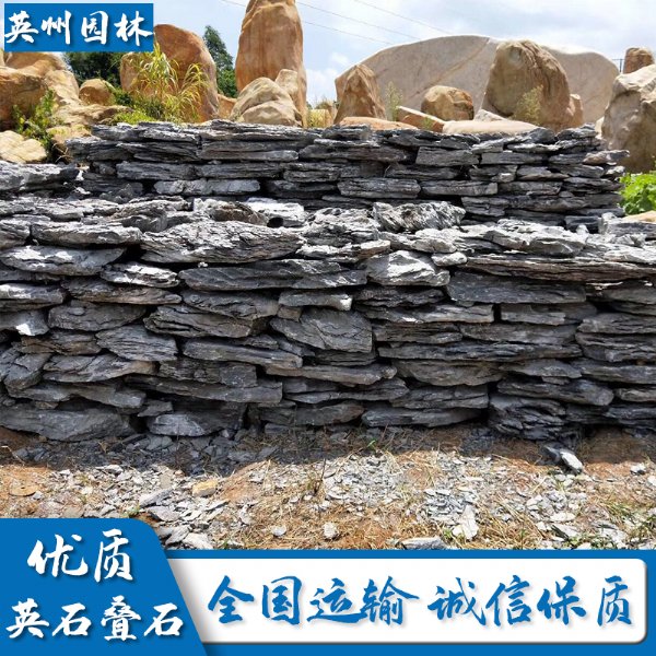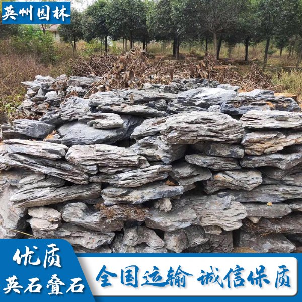 英石主产区为英德市望埠镇的英山,山上、山沟、水中均有,这是英石的宗源,英石叠石:重在15kg到50kg,规格20公分到100公分,颜色多为黑色、深蓝色、深灰色间白,特点为造型横形、薄,纹路清晰,网络报价为大概价格,详细欢迎来电咨询。因为产品繁多不能一一上传到网站展示,来电时请提供规格,客服专员会发送对应规格的产品图片供您挑选。用途;多用于做庭院
