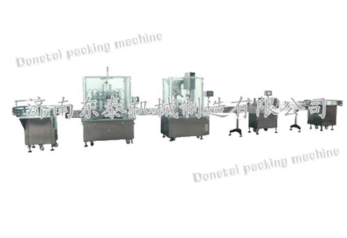 液体灌装生产线是由理瓶、灌装、旋盖、铝箔封口、不干胶等单机组成的瓶装生产线。