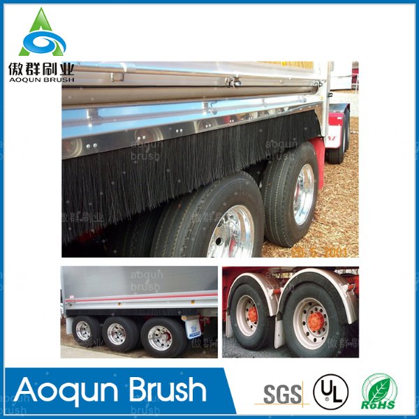 毛刷也称为挡泥板毛刷,是汽车和挂车防飞溅系统的其中一部分,主要是用于减少车辆高速运动时轮胎向上溅起水雾产生的系统,使得溅射的水雾附载防飞溅毛刷上,并通过水流重定向收集,把水雾引流到地面,达到保持车身、车牌、倒视镜清洁的效果,从而提高驾车的安全系数! 傲群防飞溅毛刷可根据不同车型的轮眉大小、弧度的不同来定制出更加符合使用的挡泥板防飞溅毛刷,更加有效地起到防飞溅、保持车辆清洁等作用,并符合GB 34659-2017汽车和挂车防飞溅系统使用要求。