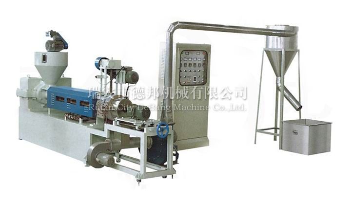 本机以hdpe、LDPE废膜为原料经挤出风冷热切制成颗粒,质量好、无气孔、无水分,该机