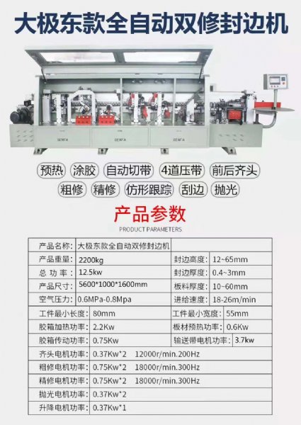压轮的高低根据工件的宽窄、长短、厚度和压轮磨损的程度,通过压轮升降调整杆和数码表来调节,一般以压轮下表面低于工件上表面3Mm左右为宜(可以通过数字表看)。压的过松,工件在封边机上容易位移,影响封边的质量;压的过紧,压轮容易损坏、压梁和立柱变形较大,长时间使用会造成压梁和立柱变形,影响设备精度;同时也会使减速箱