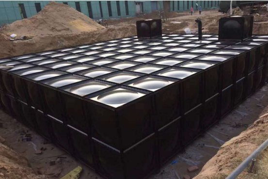 水泵组两大部分组成。水箱内部由拉筋站柱加强稳固,以便承受来自水箱内部水和顶部覆土带来的压力。因为是埋在土里的,所以水箱外面用沥青喷涂两遍,达到防腐作用。