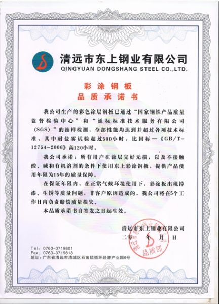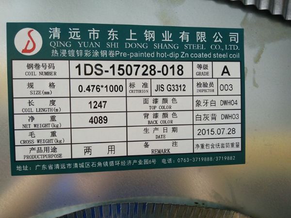 东上钢业产品均严格按日本标准JIS G302-1998的规格进行生产,产品质量达到欧盟标准EN 1042-2000、EN10147-2000,美国标准ASTM A653M-2004a,**标准GB/T 2518-2004的规定。