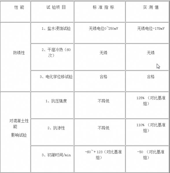 钢筋阻锈剂性检验符合国家行业标准