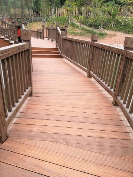 不锈钢螺丝固定,安装时地板切头端面及所钻孔螺丝孔均要及时用户外油刷两次以上封口,以免水分进入而变形。