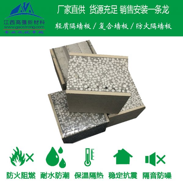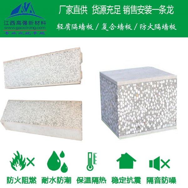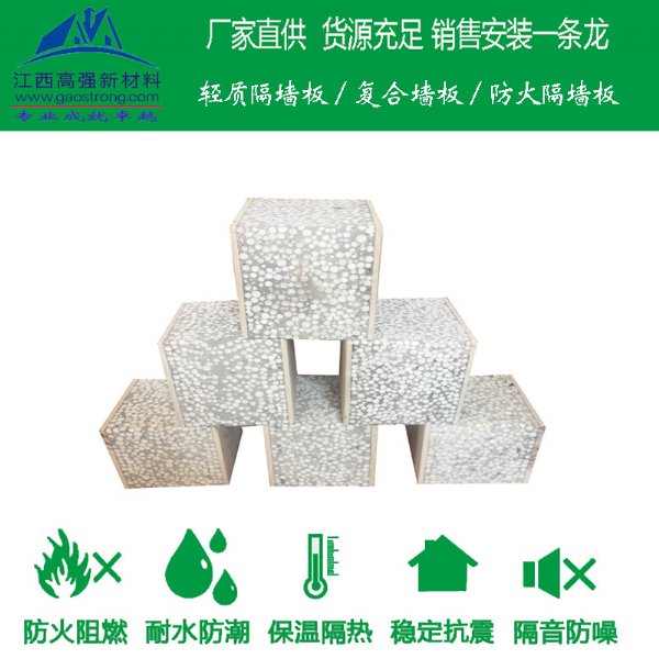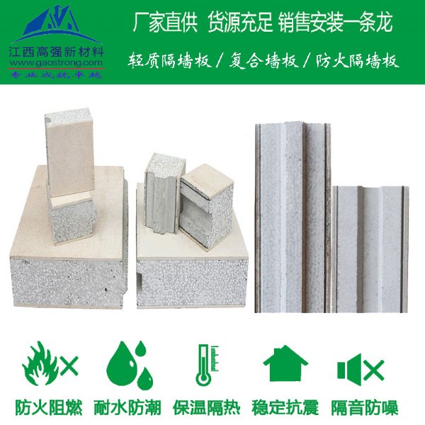 江西高强新材料科技有限公司生产的轻质防火隔墙板全国大量供货,货源充足,质优价廉。产销量年年快速上升,应用范围不断拓展,并且成功应用于国内多个标志性大型工程项目上市公司紫金矿业、江西铜业、滨江宾馆、前湖迎宾馆、南昌火车站、江西省中医院等,在全国主要城市均树立一大批标志性样板工程,应用领域覆盖公共建筑(楼、馆、中心)、高档酒店、娱乐场所、写字楼、商场、高层住宅、别墅等等,应用范围包括室内隔墙、外墙、屋面、楼层板、防火隔断、