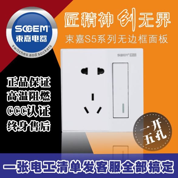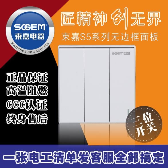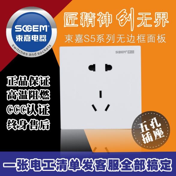 SOGEM上海束嘉电器S5系列无边框大板开关插座雅白