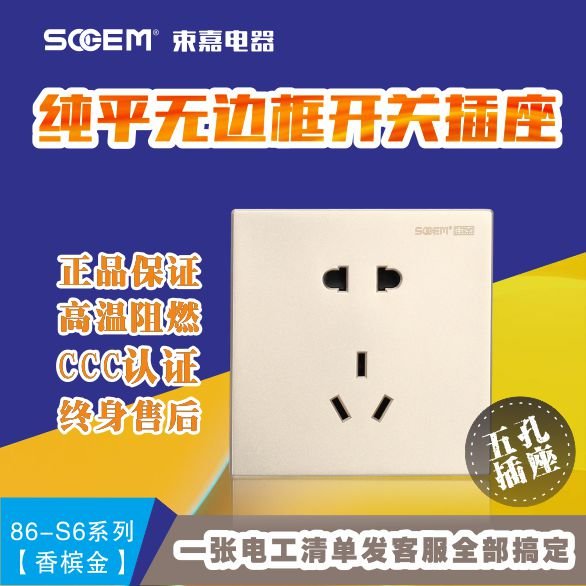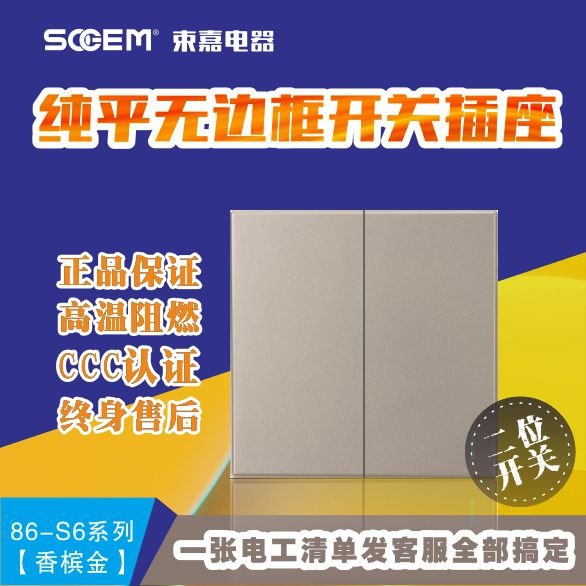 SOGEM上海束嘉电器S6系列香槟金无边框大板开关插座